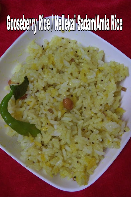 Gooseberry Rice / Nellekai Sadam is a tangy variety rice which can be prepared as a lunch box special. When kids don't eat neelekai or gooseberry which is rich in iron, we can prepare this recipe for lunch box.... which can be served with papads or any raita. A simple, easy and healthy variety rice.